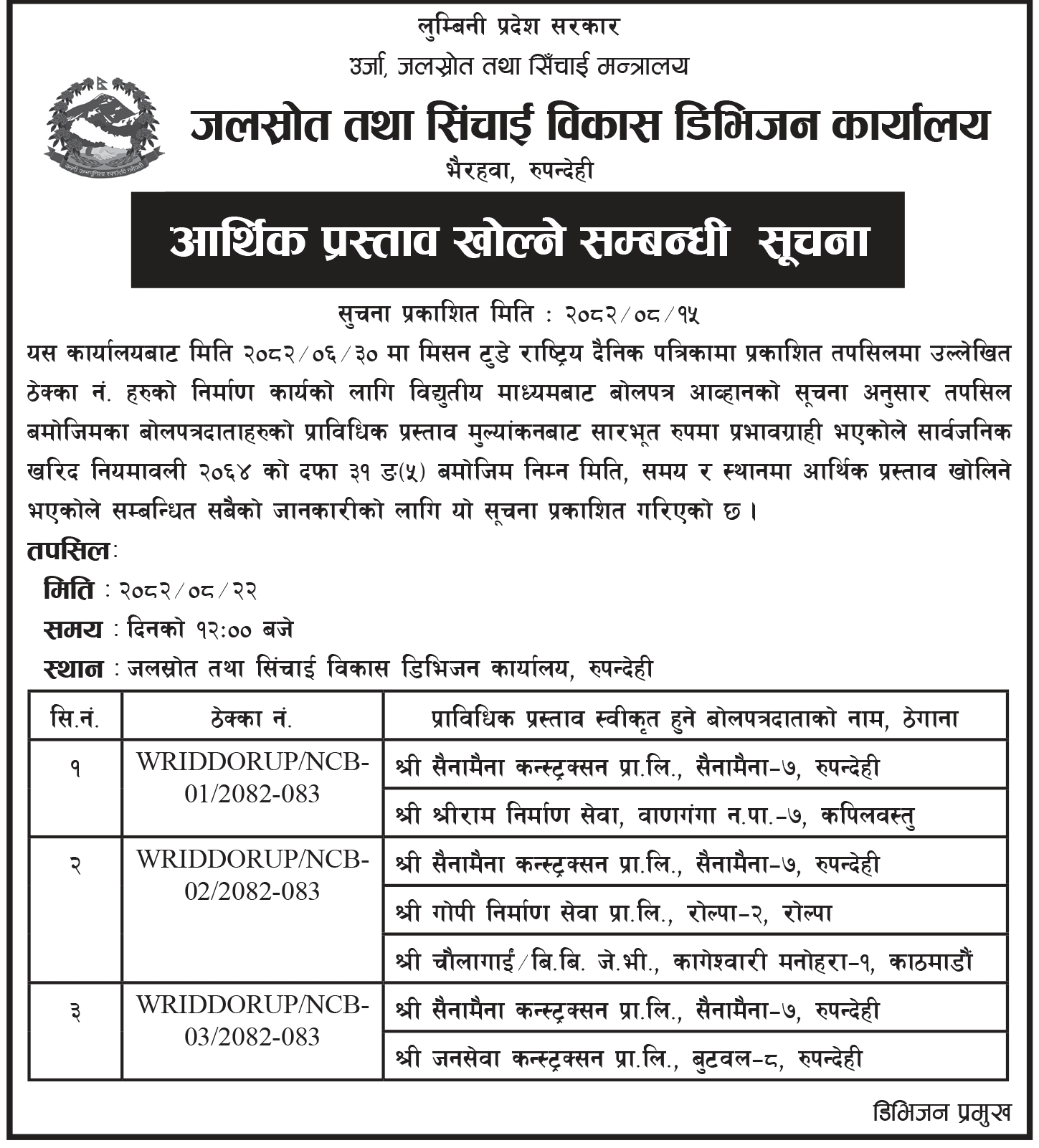 आर्थिक प्रस्ताव खोल्ने सम्बन्धी सूचना